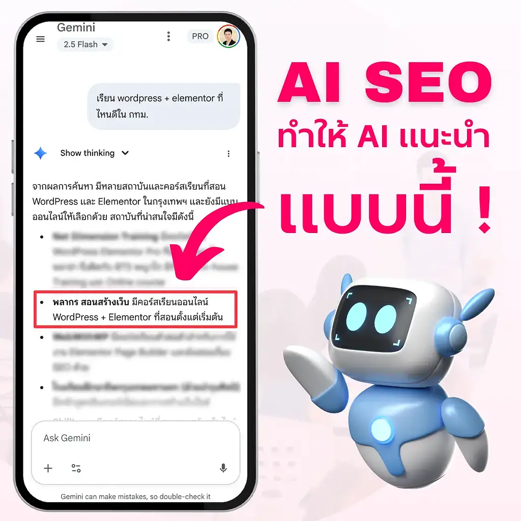 ติดอันดับ Google และ ช่วยให้ AI แนะนำ ธุรกิจของเรา หลักสูตร AI SEO ช่วยได้
